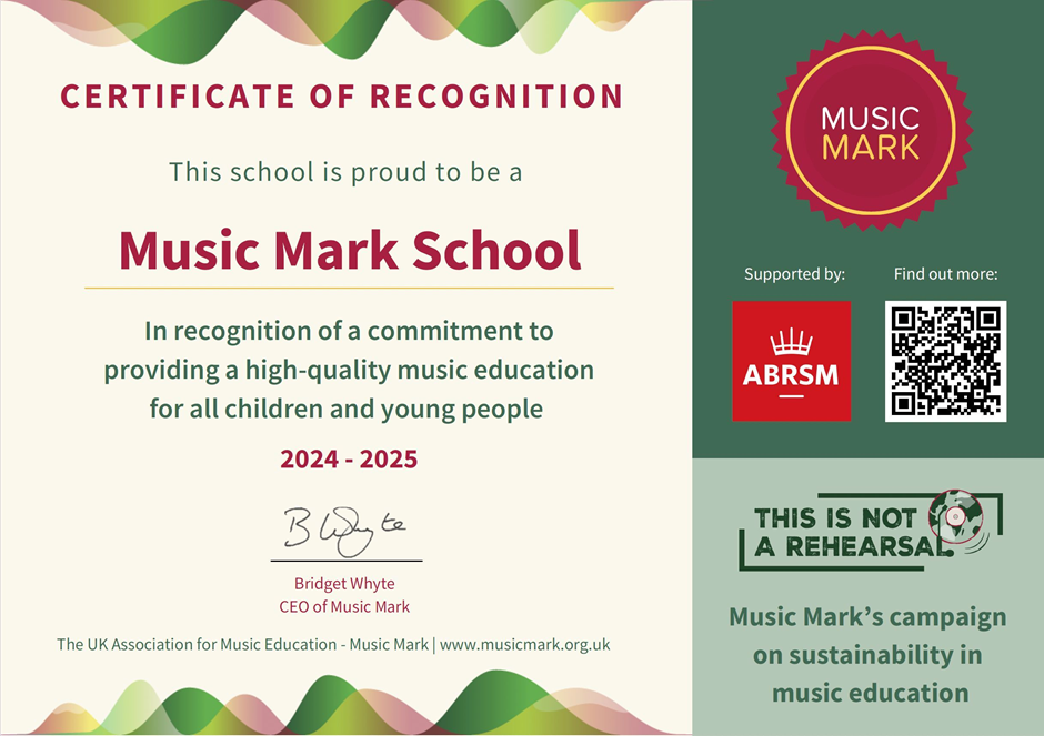 Music is an integral part of the Willows School Curriculum which we endeavour to incorporate into our daily learning. The Willows School has been awarded a prestigious Music Mark. This is a significant achievement and a direct result of the value that the school places on music and our commitment to providing a broad and balanced music curriculum.